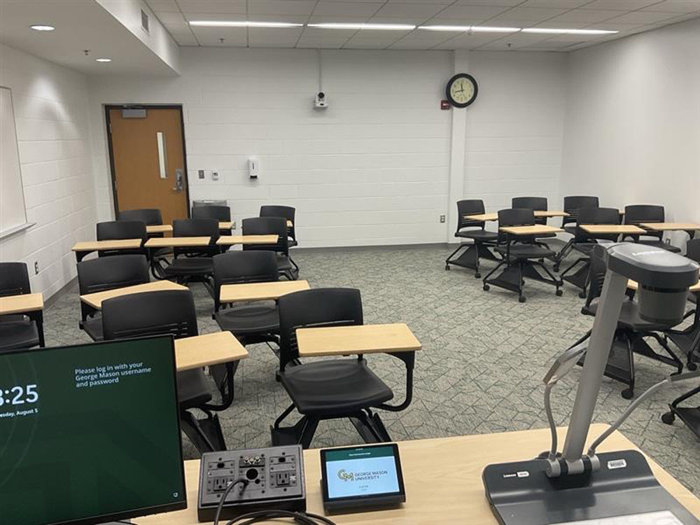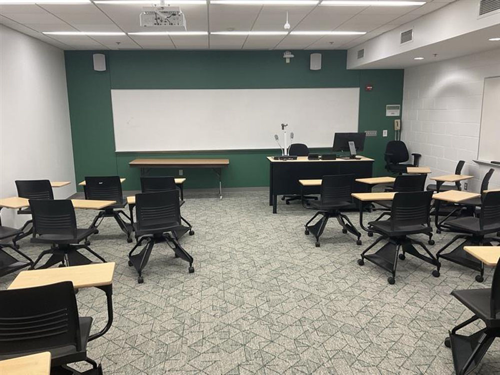 These photos give a specific room view. For precise room capacity and photos showing the furniture and layout of your exact classroom, please log in to 25Live.