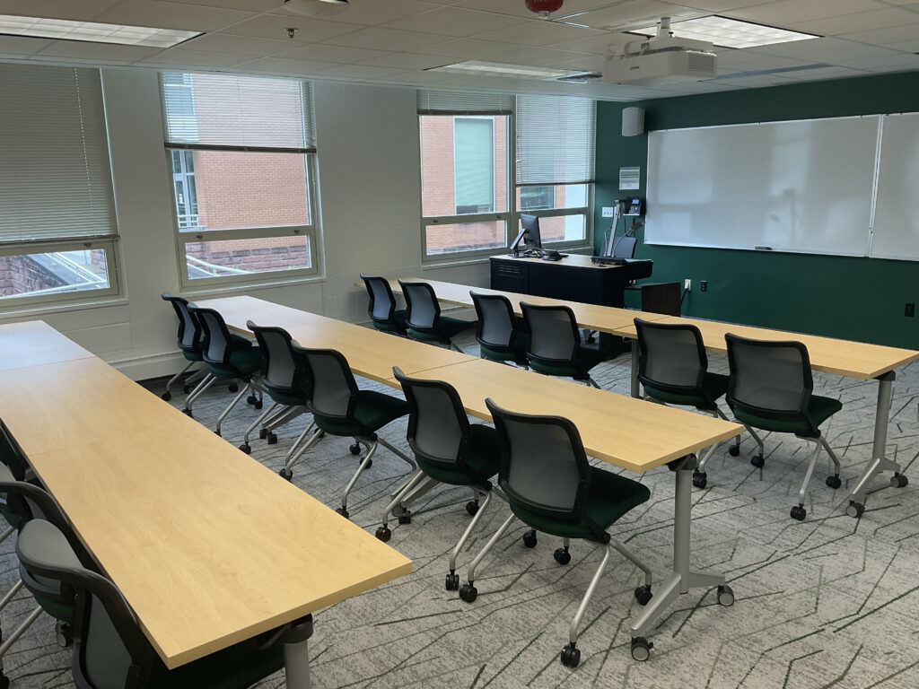 These photos give a specific room view. For precise room capacity and photos showing the furniture and layout of your exact classroom, please log in to 25Live.